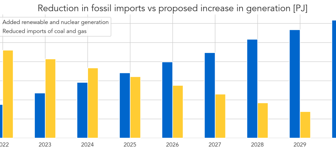 Now let’s create a best-case scenario to make the EU’s energy sector independent of Russia (and cleaner!) within the decade. It involves a lot of new generation from non-fossil sources, some efficiencies, and a lot of resupply from friendly partners.